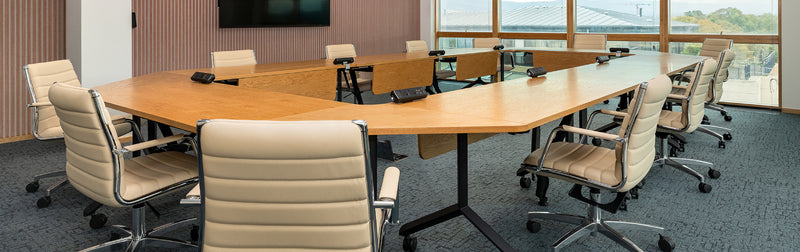 When they asked us to refresh their boardroom, the brief was simple: deliver a high-end setting for large board meetings — quickly and flawlessly. We proposed a calm, formal palette of rich veneer and supple leather, backed by meticulous service and a tight programme.