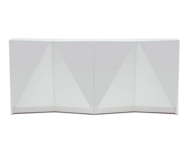 The Alpa Reception Desk with Glass Top boasts a modern minimalistic clean line design with a shiny glass front & a base incorporated with stylish LED lights. The reception counter can be customised in colours & shapes as desired.
