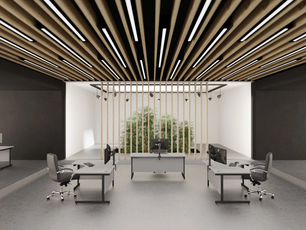 Ashford combines looks and practicality with outstanding durability at an affordable price. Metal legs are manufactured from 16 gauge steel powder coated in silver. All desk tops and panel legs are constructed from E1 grade heat and scratch resistant 25mm melamine panels.