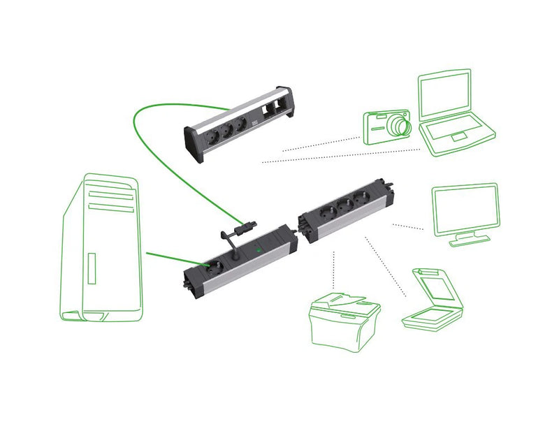The Automatic Switch-Off promotes eco-friendliness in the workplace. No standby current is drawn by the master device. The automatic switch-off also reduces fire risk. Improve your carbon footprint and save money.