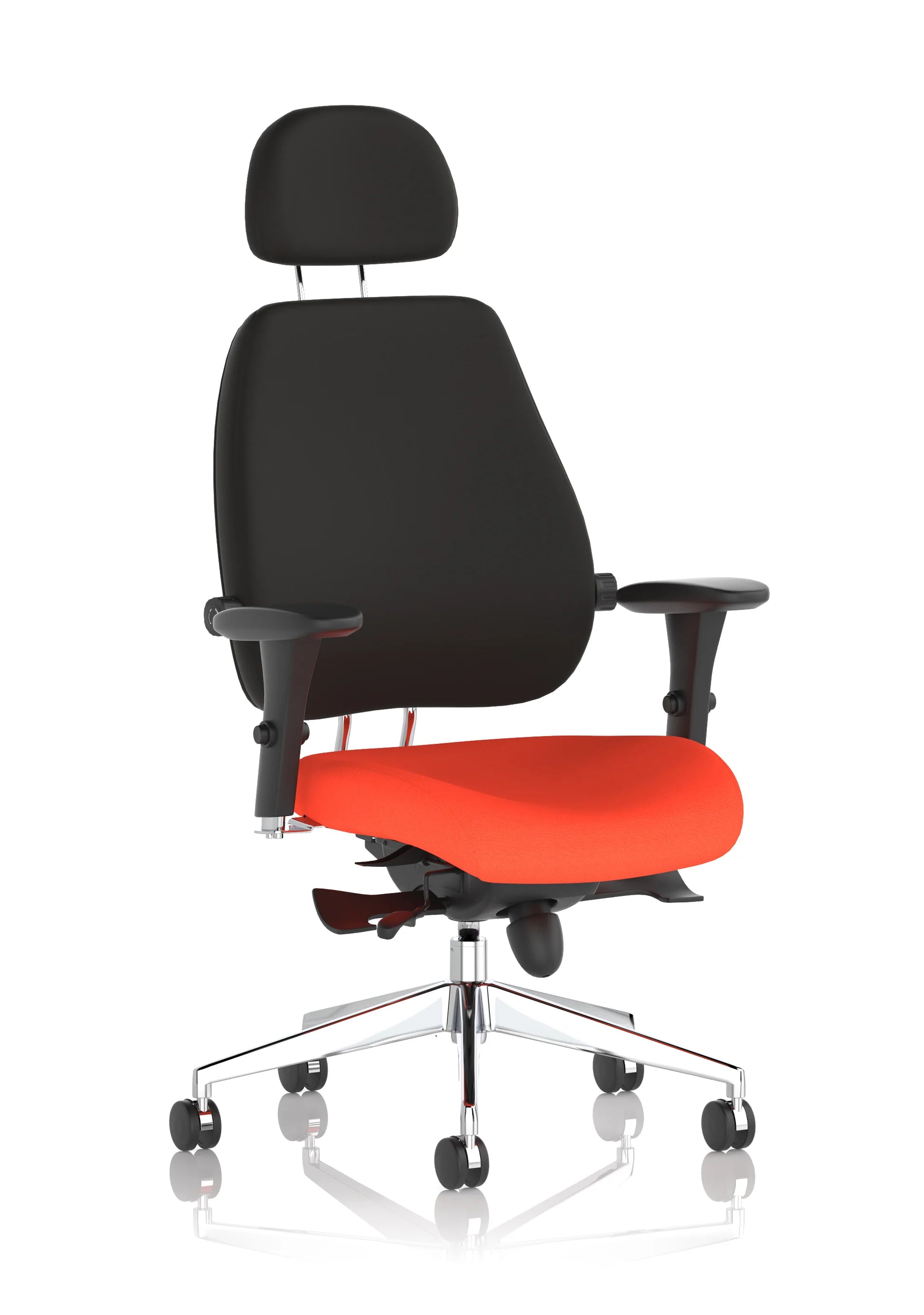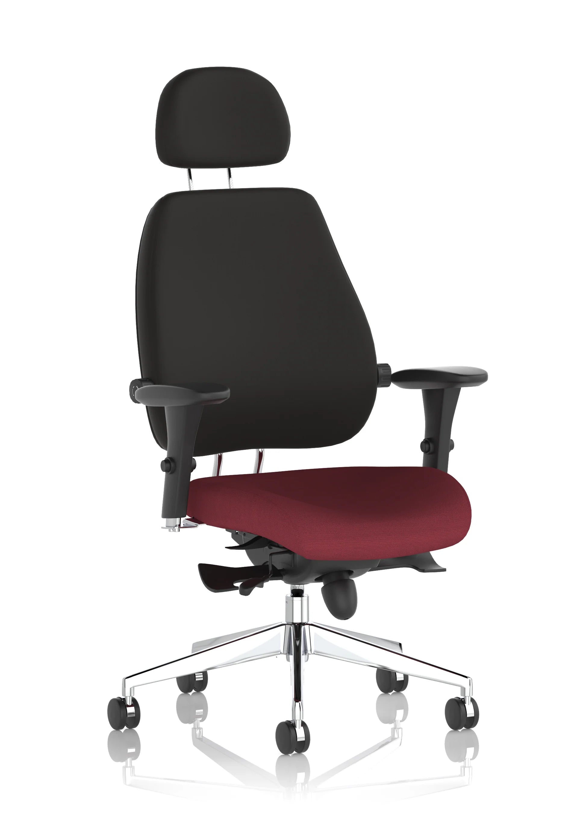 More work hours are lost through back pain and injuries than any other reason, and the number of people reporting back issues is rising rapidly. One reason is poor seating posture at work, especially amongst office personnel. Chiro High Back and Medium Back posture seating are fully functional contoured chairs. They are feature rich and highly functional to ensure they can be adjusted to support any user in the best possible way. They can combat the discomfort of back sufferers and educe the likelihood of posture related medical problems being acquired. They carry the additional endorsement of the respected chiropractor Dr Robert Bateman and as well as stock fabrics can be bespoke upholstered in any fabric of your choice. The Chiros match their functionality and quality with a design signature that makes them one of our most sought after big value seating solutions.