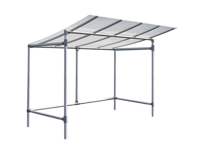 The Economy Bicycle Shelter offers a secure and space-efficient bike storage solution for communities and businesses. Built with a ø 50 mm anodised aluminium tube structure, it ensures strength and durability. Measuring 2453 x 2150 x 1976 mm, it provides ample storage while maintaining a compact footprint. The anti-UV-treated 10 mm cellular polycarbonate roof protects bicycles from weather damage, ensuring long-lasting performance in any environment.