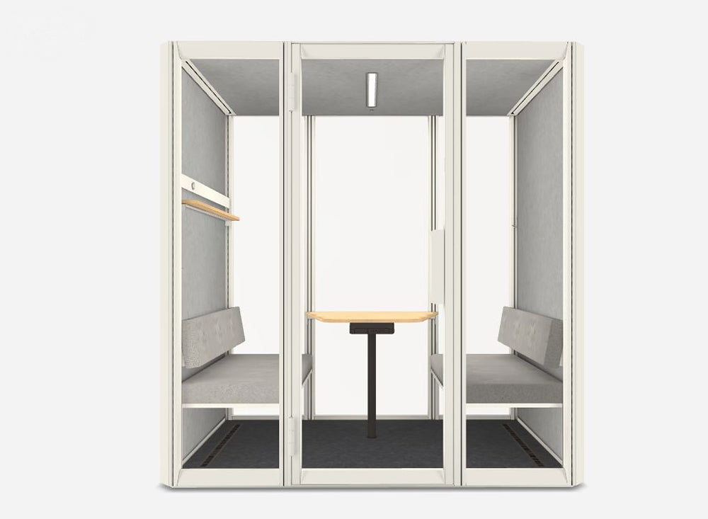 An acoustic oasis for one. Step inside for a quick call, video meeting, or deep work session to come up with the next big idea. Use extra add-on sets for even more functionality. Add bookshelves or a whiteboard anywhere and at any height, inside or out. Your office needs a slight refreshment? Simply reconfigure your add-ons. Its walls can be either black or white, but Jetson is always green at its core. Several innovations make it the most earth-friendly pod on the market.
