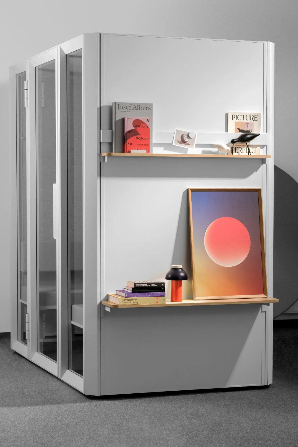 A solo pod designed to maximise concentration, offering high B-class sound insulation and effective ventilation with 365 m³/h airflow. The Jetson M1 features a wide, ergonomic work desk and spacious interior, ideal for installing a full-size office chair. The most earth-friendly acoustic pod on the market
