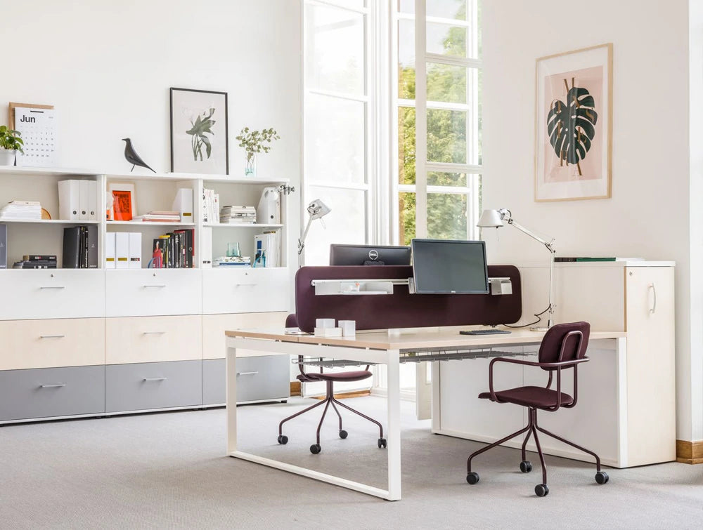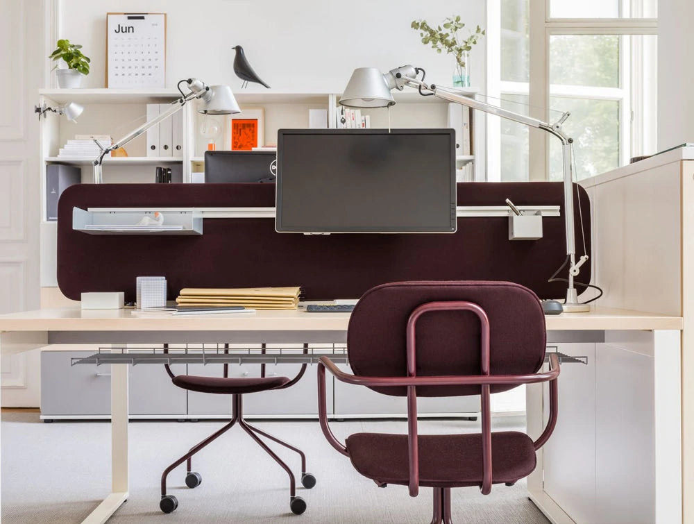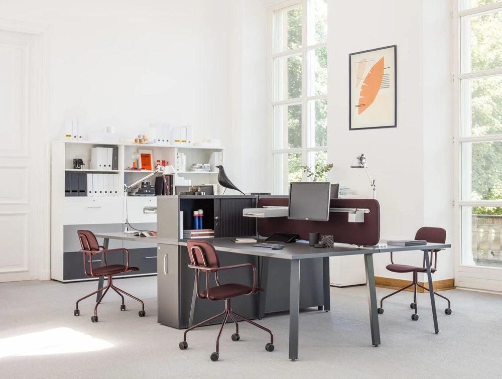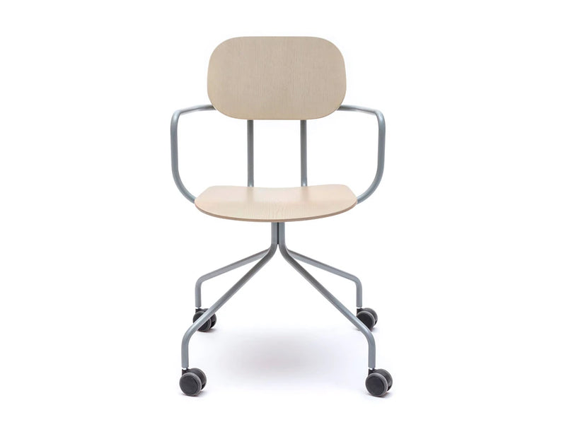 New School is a new take on the classic school chair design adapted to the varied ergonomic requirements of modern offices. Available in trestle or 4 legs metal base with optional castor wheels, armrest and headrest.