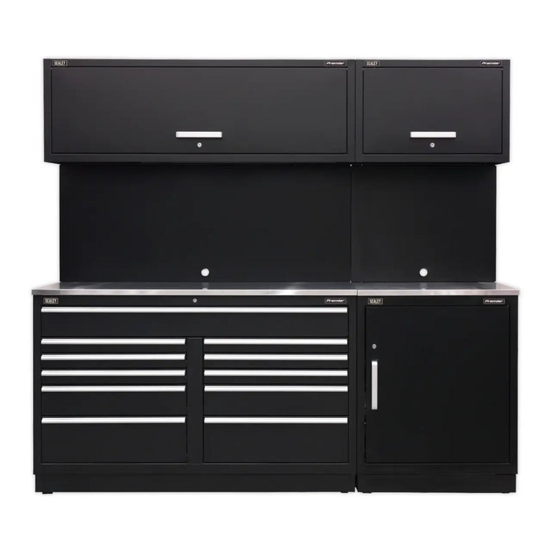 Package includes: APMS13 - Heavy-Duty Modular Wall Cabinet 775mm, APMS14 - Heavy-Duty Modular Wall Cabinet 1550mm, APMS10 - Modular Back Panel 775mm, APMS11 - Modular Back Panel 1550mm, APMS01 - Heavy-Duty Modular Floor Cabinet 775mm, APMS04 - Heavy-Duty 11 Drawer Modular Floor Cabinet 1550mm, APMS08 - Stainless Steel Worktop 775mm, APMS09 - Stainless Steel Worktop 1550mm, 10 Year Guarantee*.