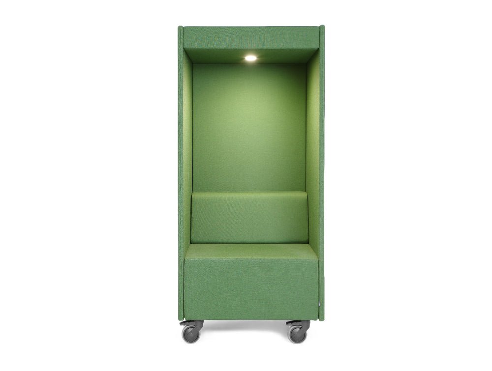 Provides a comfortable and private space for making phone calls. It was designed with noisy offices in mind, where silence and privacy are highly valued. Thanks to acoustic walls that provide effective sound isolation, conversations can be conducted without any disturbances. Quadra phonebox is available in two versions: mobile (on wheels) and static (on a metal sled, matching Quadra sofas). The chair also offers a wide range of customisation options through the choice of two different upholstery colours.