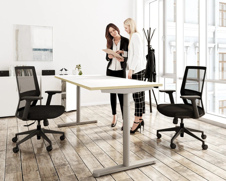 RoundE is a compact, space saving solution - ideal for small or home office environments. The RoundE sit-stand desk adjusts from a height of 650mm to 1150mm with the easy to use handset. Available in a choice of sizes, frames and high quality worktop finishes.