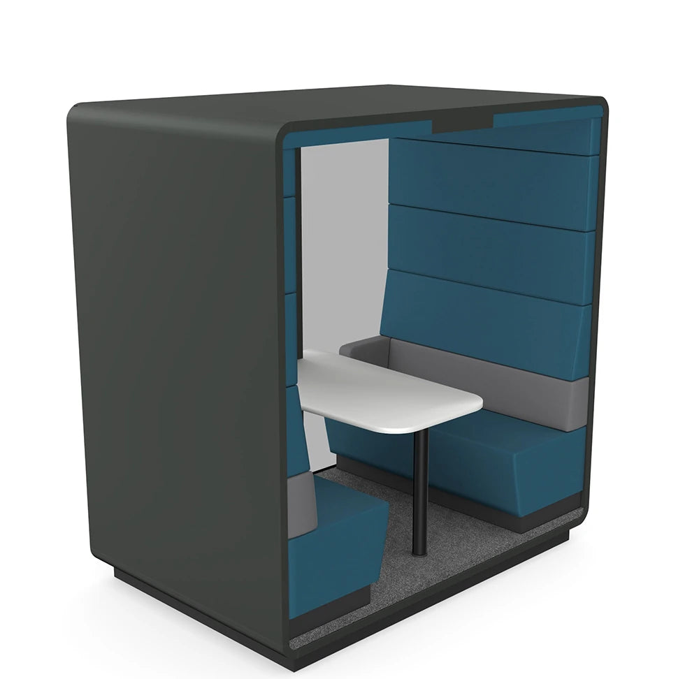 Smart Office Hush Free L Acoustic Closed Meeting Pod is an acoustic pod with Class A soundproofing, perfect for meetings, presentations, and video conferences. Featuring 500 lux LED lighting and a customizable interior, this pod offers a quiet, focused environment for 4-8 people. Ideal for larger business meetings, both in-person and online, it’s a modern alternative to traditional conference rooms.