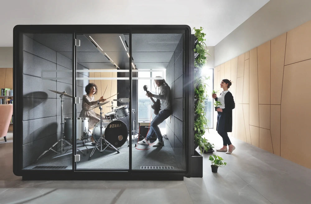 HushMeet L is a great alternative to a traditional conference room. A comfortable place for important meetings, these soundproof meeting pods can be used as small to medium-sized conference rooms. Thanks to the modular form of HushMeet L, you can choose the size that perfectly fits your office. This innovative space has everyone inside feeling prestigious and unique, not bad for an acoustic meeting pod!