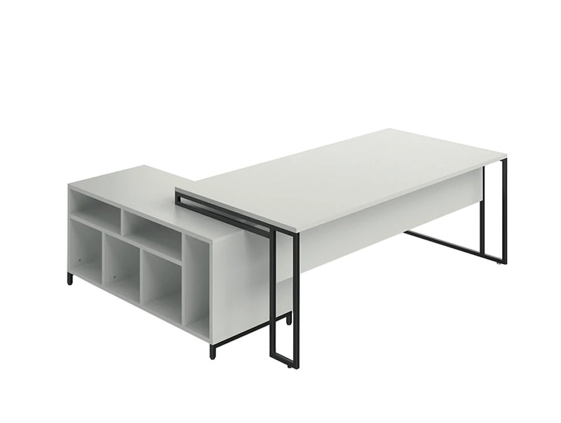 The aesthetics of the Stricto executive desk are both vintage and modern with the revisited double ribbon leg perfectly matching the thickness of the top. Featuring a light and contemporary style, the Stricto executive desks combines a generous worktop with a storage unit within reach. Stylish double ribbon leg made of 25 x 25mm square tube, with black epoxy finish. Structural modesty panel reinforced with a metal beam. 25mm thick Structure melamine-coated.
