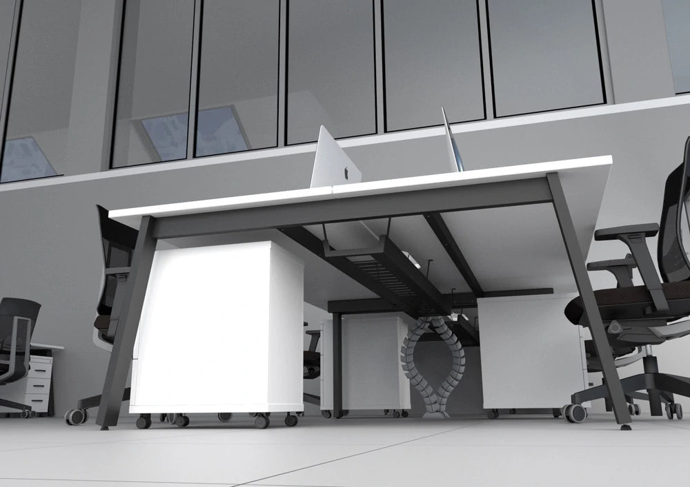Switch is a highly flexible desking range with the ability to make complex single structure configurations of any length. Five sub systems comprising of various shapes interact together to give you the most versatile desking system we have ever designed. Switch has been laboratory test certified by Satra and has passed the following tests: BS EN 527-1:2011 - Ergonomics BS EN 527-2:2002 - Mechanical Safety BS EN 527-3:2003 - Strength and Stability.
