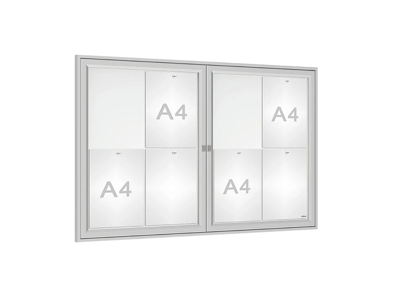 The Traditional Outdoor Notice Board offers a secure and weatherproof display solution, accommodating 2 to 18 A4 sheets. Its 4 mm Plexichoc® glazing provides clear visibility and vandal resistance. Featuring a reversible side opening or dual-door access, it ensures easy maintenance. A tamper-proof safety lock with two keys enhances security, while an elastomer seal guarantees waterproofing. The silver anodised aluminium frame can be customised in various colours.