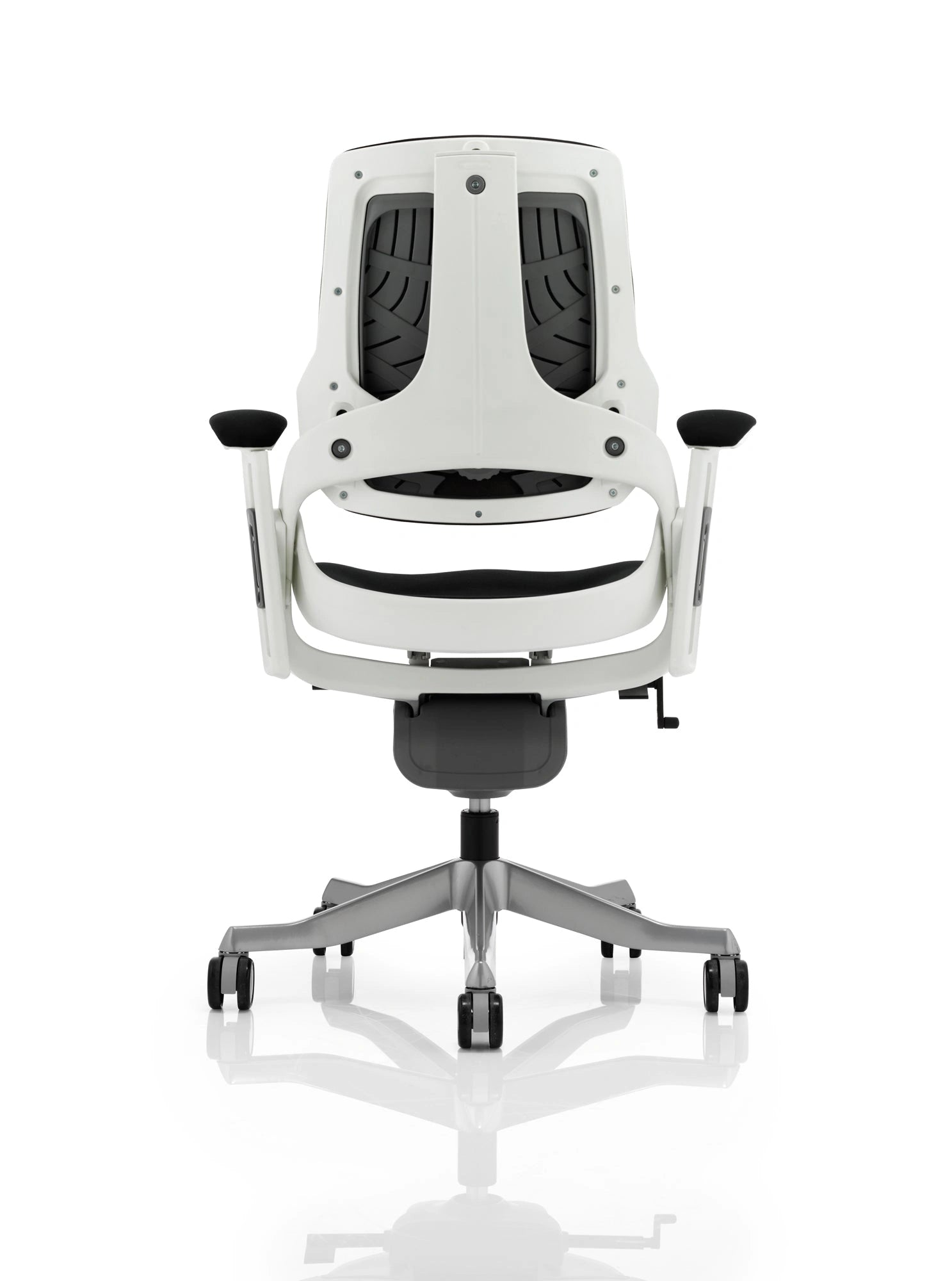 Boldly going where no chair has gone before. The Zure takes you to a new comfort destination. Our unique range of this distinctive, uber stylish posture perfect seating solution has it all. There are fine mesh, fully upholstered, partly upholstered and stunning flexible elastomer options. The seat and backrest are carefully contoured to provide maximum comfort. The high quality outer skeleton wraps the user in touch point technology. Padded arm rests on the fabric and leather options provide pleasing eye-appeal whilst the elastomer versions have colour coded armrests. The polished aluminium base houses highlighted castor detailing.